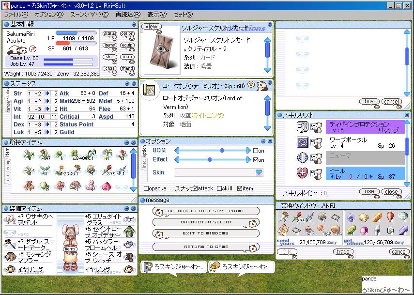 スキンは解凍したフォルダ『panda』をラグナロクオンライン→『skin』というフォルダに入れて下さい。